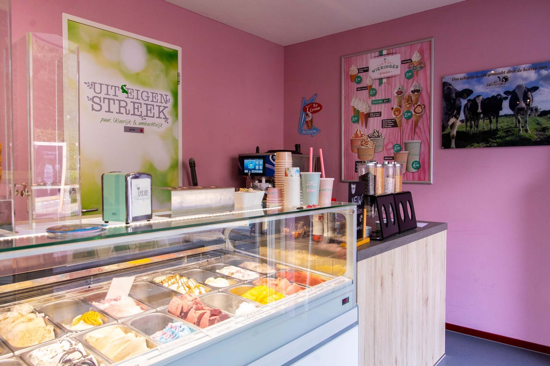 Die Wieringer IJssalon ist eine moderne echte Eisdiele mit köstlichem Eis, hergestellt aus Milch von De Wieringer Molkerei.